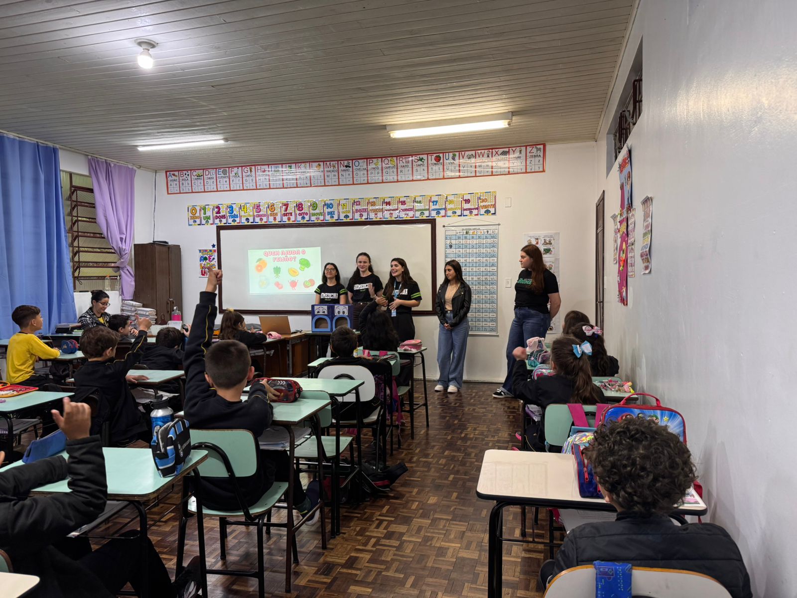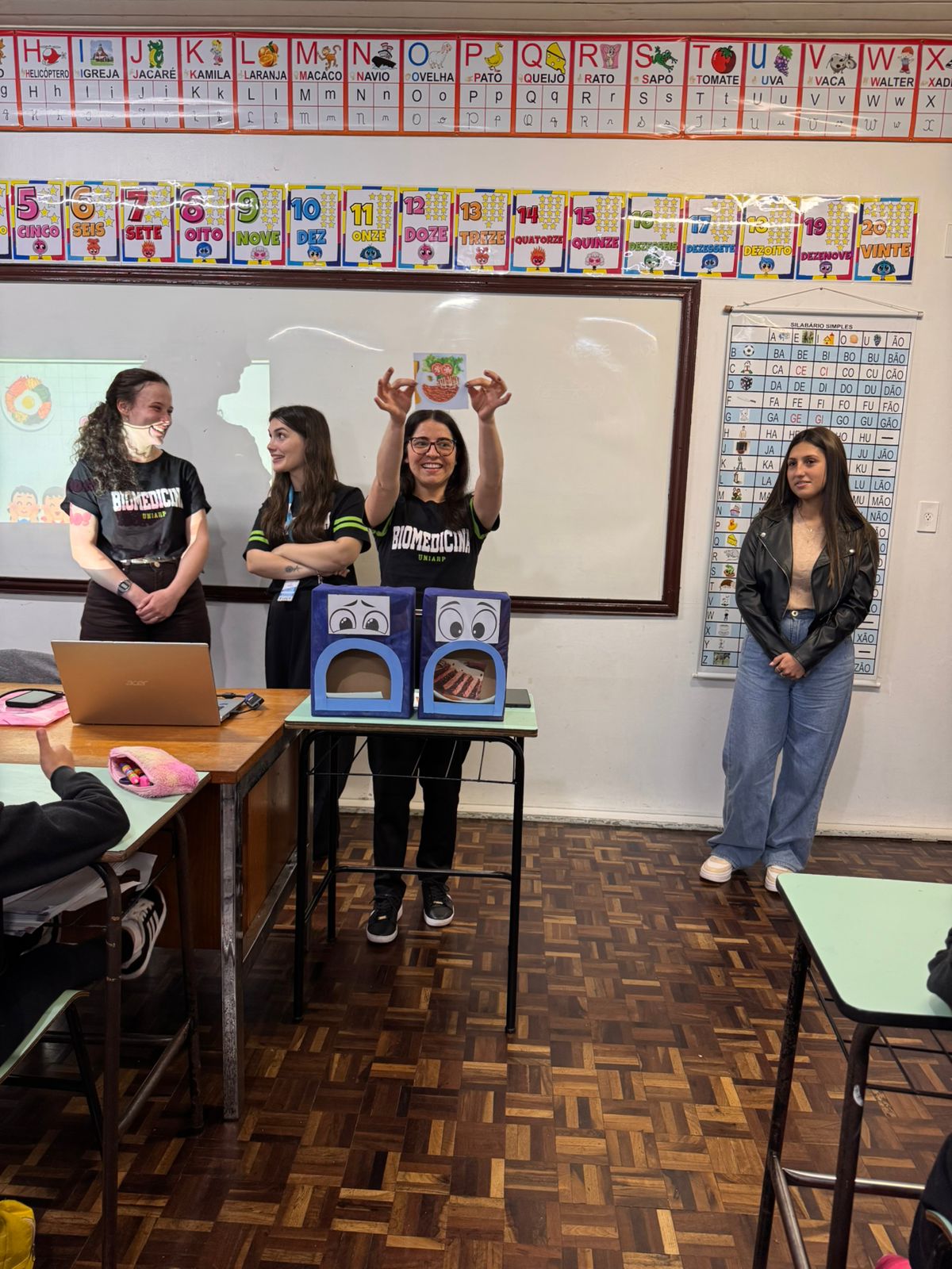 As acadêmicas do 6º período do curso de Biomedicina da Universidade Alto Vale do Rio do Peixe (UNIARP) — Deisiane Rachinski, Ester Lopes Krieguer, Laura do Prado, Mayndra Martello e Rayssa dos Santos Zancan — realizaram uma ação extensionista voltada à promoção da saúde infantil no Colégio Adventista EBI Centro de Educação LTDA, em Caçador-SC A iniciativa foi desenvolvida na disciplina de Projeto Integrador II, sob orientação da professora Ana Paula Gonçalves Pincolini.
