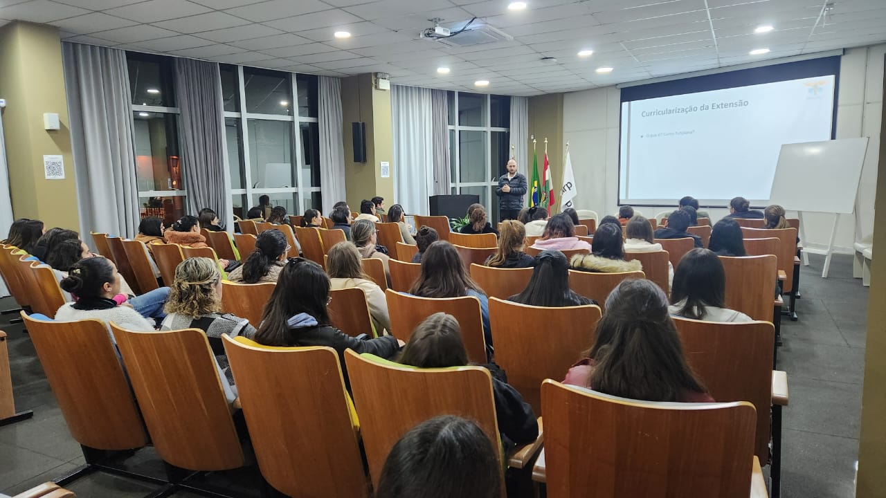 Outro ponto de destaque foi a curricularização da extensão, com explicações sobre o conceito, funcionamento e relevância dessa integração entre atividades acadêmicas e a comunidade, reforçando a necessidade de participação ativa dos acadêmicos em projetos institucionais e externos. Também foram apresentadas informações sobre o uso do Ambiente Virtual de Aprendizagem (AVA) e as disciplinas na modalidade EaD ofertadas neste semestre.