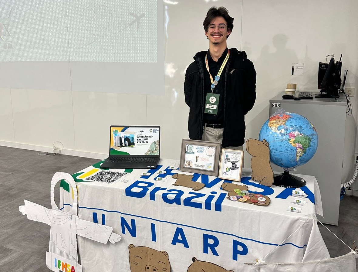 Durante o evento, o Comitê Local participou da Feirinha de Intercâmbios, onde o diretor de Intercâmbio Internacional, Otávio Fusatto, apresentou as vagas de intercâmbio disponíveis em nossa universidade.
