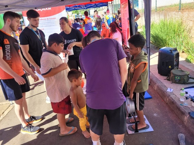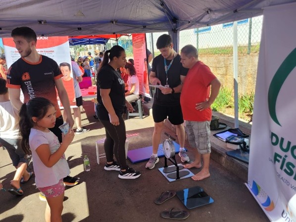Durante a ação, acadêmicos e professores do curso desenvolveram oficinas recreativas e realizaram avaliações de saúde, proporcionando à comunidade momentos de lazer, cuidado com o corpo e promoção da qualidade de vida. Entre as atividades ofertadas, destacaram-se práticas voltadas à recreação, além de avaliações como índice de massa corporal (IMC), testes de força e de flexibilidade.