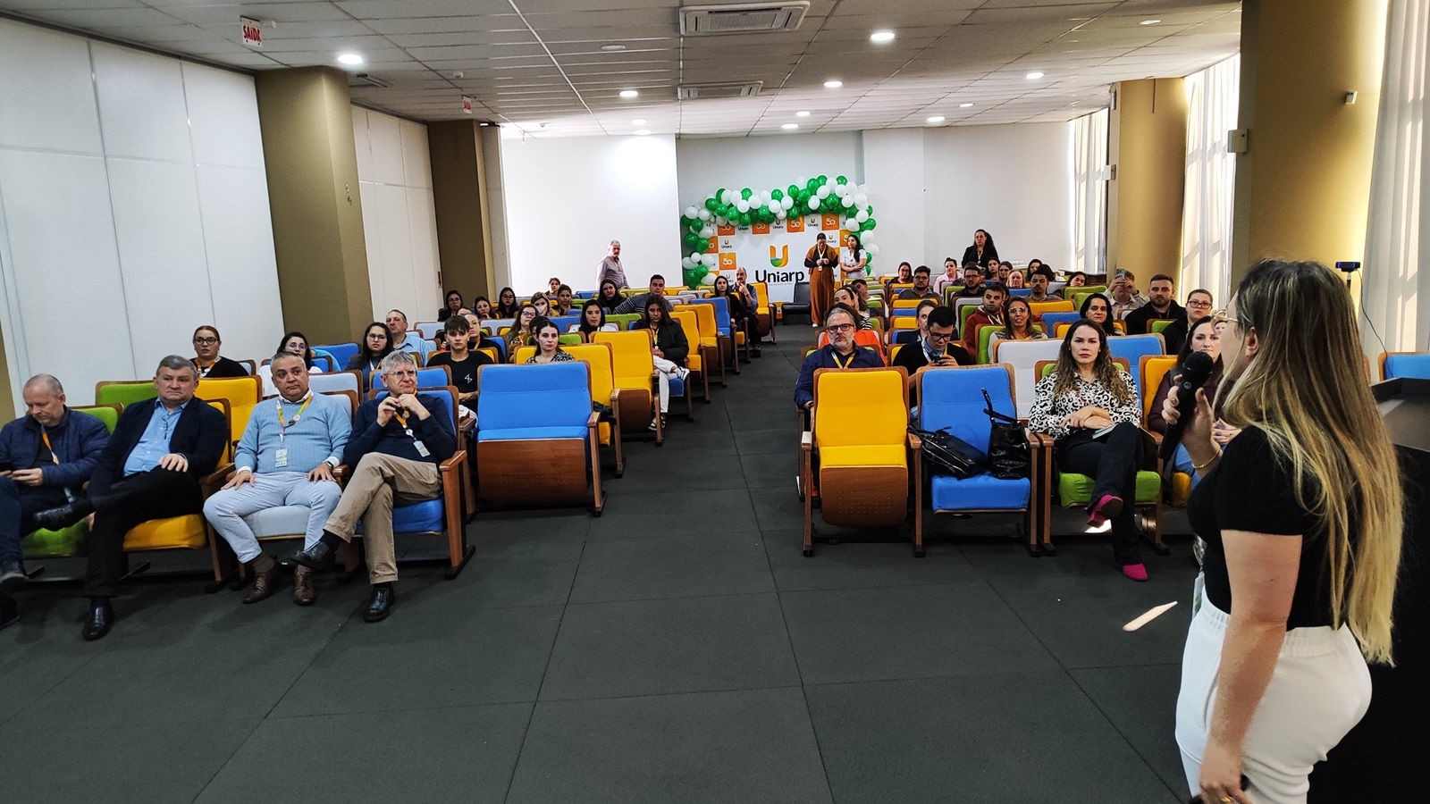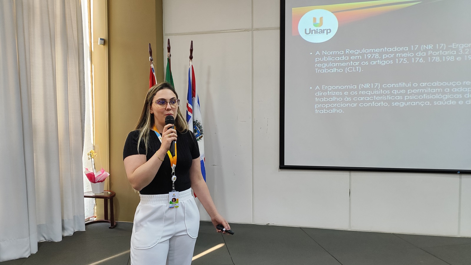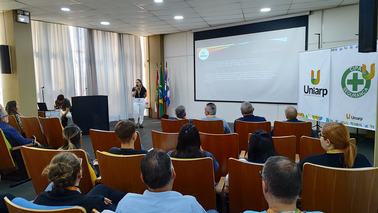 No segundo dia da Semana Interna de Prevenção de Acidentes do Trabalho (SIPAT) da UNIARP, o tema abordado foi Ergonomia. A palestra foi ministrada pela professora Manoela Spautz e, com direito a ginástica laboral.