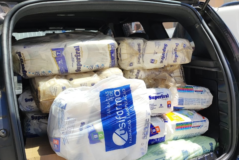 Ao todo, foram doados 462 pacotes de fraldas e 40 pacotes de lenços umedecidos para o Residencial Vô Nenê, Casa Lar São José, Hospital Maice e para a cuidadora Mariza, que auxilia no cuidado de 16 idosos acamados na cidade.