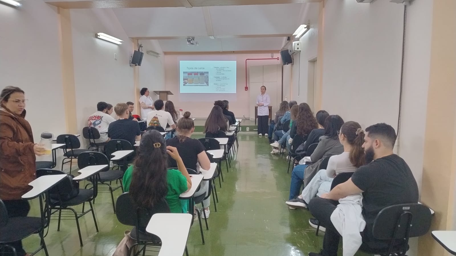 Os alunos também participaram de uma conversa com a nutricionista responsável pelo Banco de Leite Humano, Karoline Colombelli Trai, que explicou detalhadamente os processos envolvidos na rotina do serviço e as etapas pelas quais o leite materno passa até estar apto para o consumo. Como parte da experiência prática, a equipe apresentou amostras de leite materno em diferentes fases da amamentação, permitindo que os acadêmicos observassem, na prática, como o leite se adapta às necessidades nutricionais da criança ao longo do desenvolvimento.
