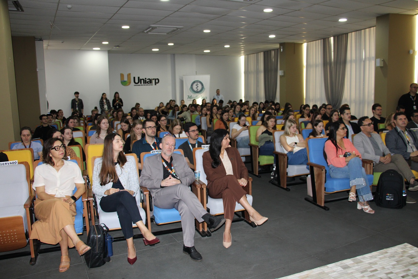 Durante a abertura oficial, a reitora Dra. Rosana Claudio Silva Ogoshi parabenizou os estudantes e professores envolvidos na organização dos eventos, destacando o impacto da iniciativa para a formação acadêmica e para a comunidade científica. “Parabenizo nossos estudantes, professores e toda a equipe da LAEM e do Curso de Medicina pelo empenho exemplar na organização deste congresso. Eventos como este fortalecem a produção científica, incentivam o pensamento crítico e promovem a integração entre ensino, pesquisa e extensão. Além disso, ampliam o compromisso da UNIARP com a promoção da saúde e com o desenvolvimento de soluções que impactam diretamente a qualidade de vida da população. Este é um espaço de ciência, colaboração e transformação, e é uma alegria ver nossos acadêmicos protagonizando esse movimento.”
