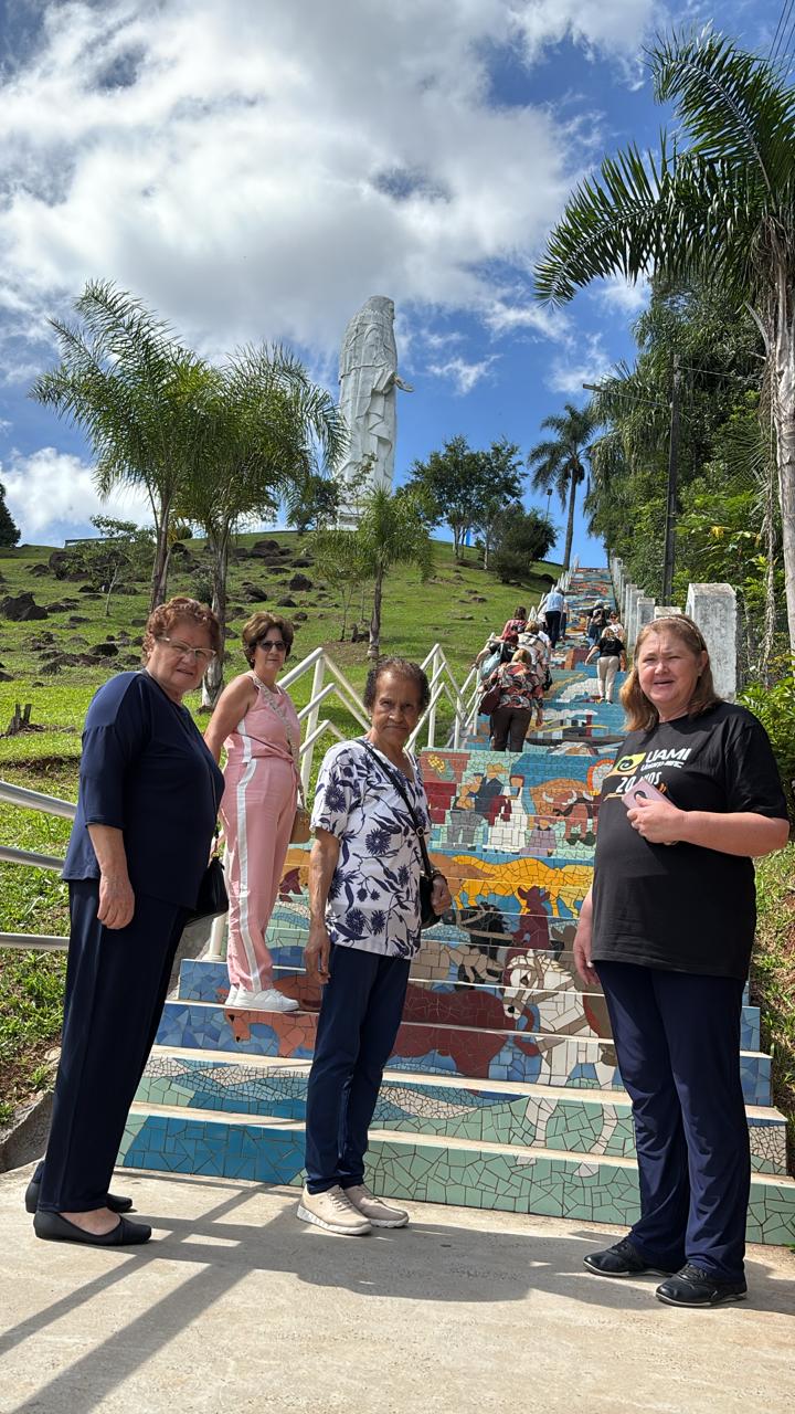 A programação iniciou com a visita à maior escadaria em mosaico do Brasil, composta por 227 degraus que retratam a história da colonização de União da Vitória. A obra artística evidencia, por meio das imagens, a beleza e a força do Rio Iguaçu, além de episódios marcantes da Guerra do Contestado, simbolizando momentos de tristeza e também de conquistas da região.