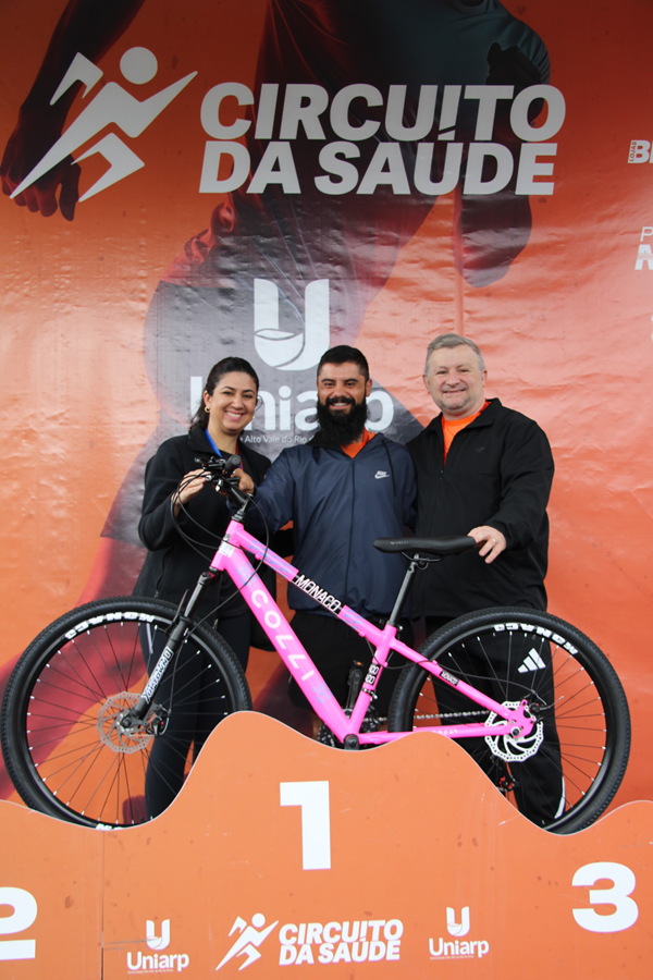 Durante o Circuito da Saúde da UNIARP, realizado no domingo, 26 de abril, dois participantes foram contemplados no sorteio de bicicletas oferecidas pelas Lojas Benoit, parceira da iniciativa. . Os ganhadores das bicicletas foram: Rodrigo Blind e Gustavo Ramos Alves da Silva, que é acadêmico do curso de Fisioterapia da UNIARP. O sorteio integrou a programação do evento, que reuniu a comunidade no Parque Central com ações de saúde, bem-estar e qualidade de vida.