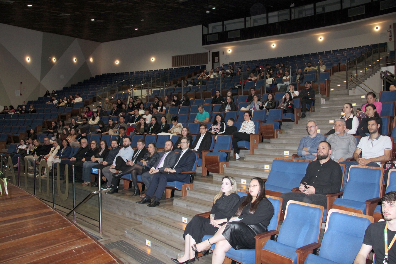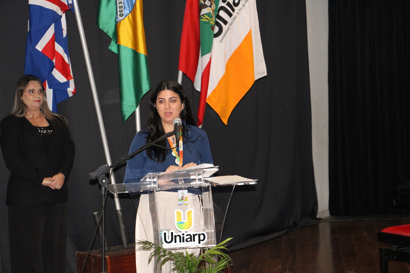 A professora Dra. Rosana Claudio da Silva Ogoshi, coordenadora de Pós-Graduação, Pesquisa e Internacionalização da universidade esteve no evento, representando o reitor Dr. Neoberto Balestrin.