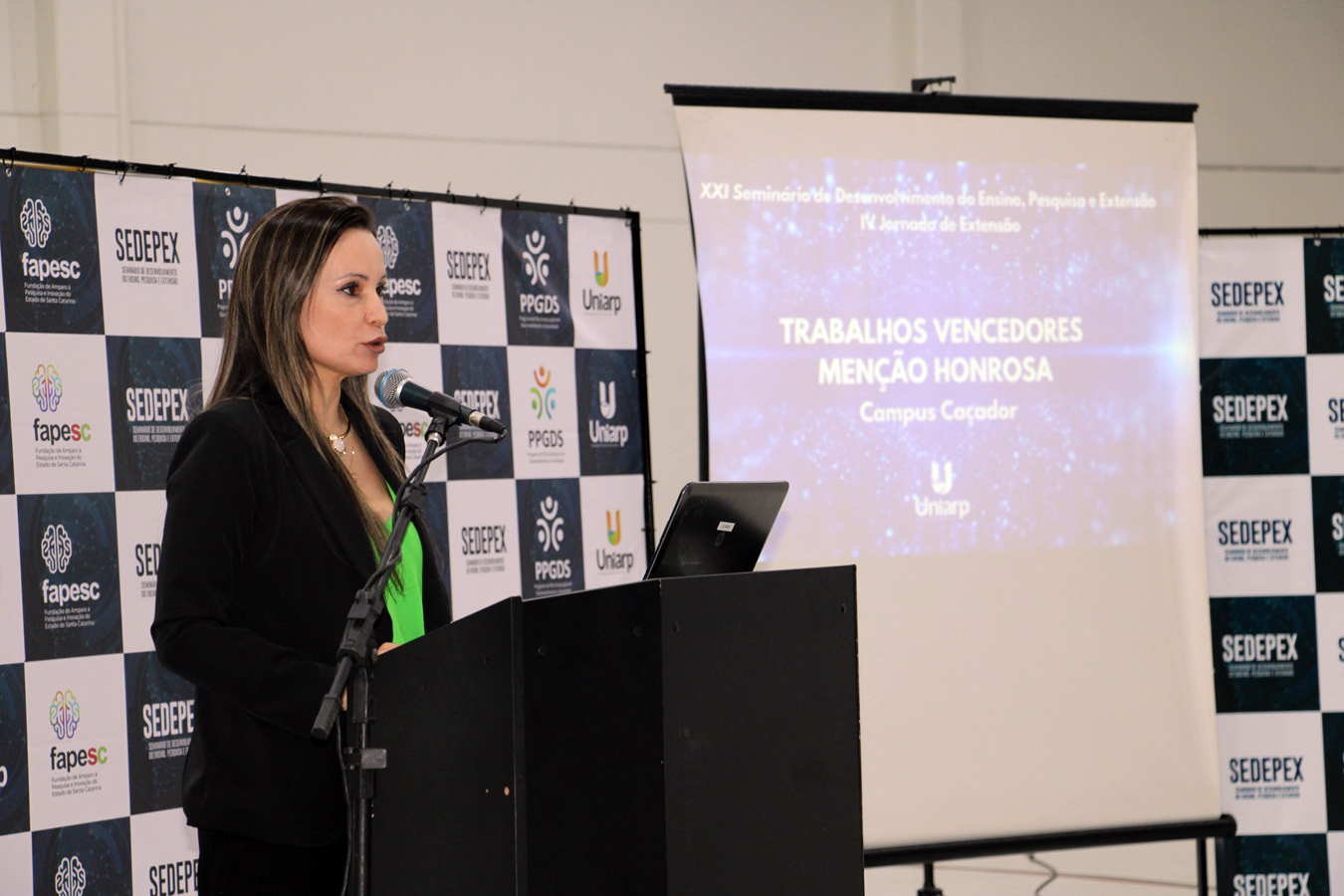 A Universidade Alto Vale do Rio do Peixe (UNIARP) realizou a 21ª edição do Seminário de Desenvolvimento de Pesquisa e Extensão (SEDEPEX), consolidando o evento como um dos principais espaços de valorização da produção científica e extensionista da instituição. A solenidade de premiação, foi realizada dia 19 de novembro e reconheceu os melhores trabalhos produzidos no 2º semestre, de autoria de acadêmicos e professores, reforçando o compromisso da Universidade com a inovação, a pesquisa aplicada e a integração com a comunidade.