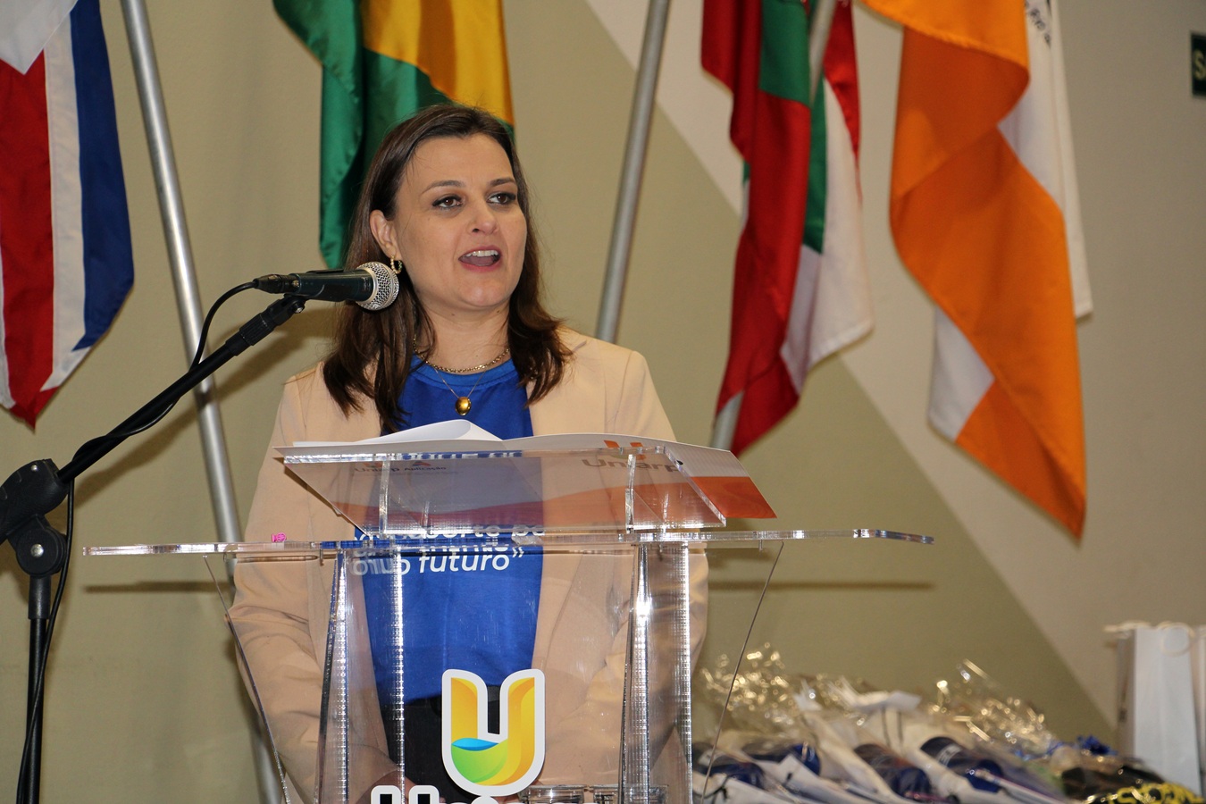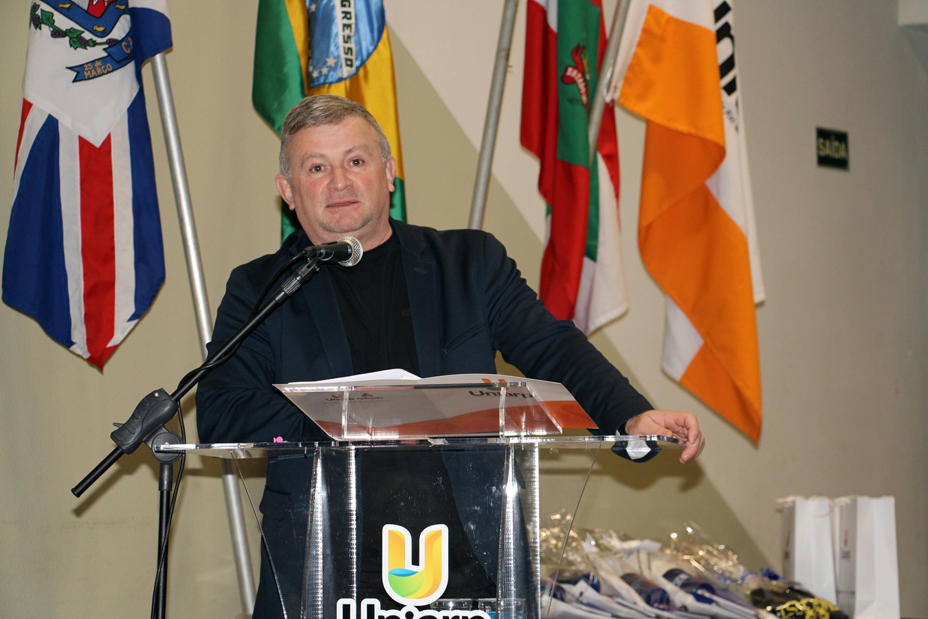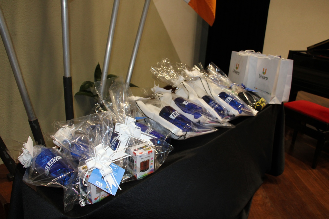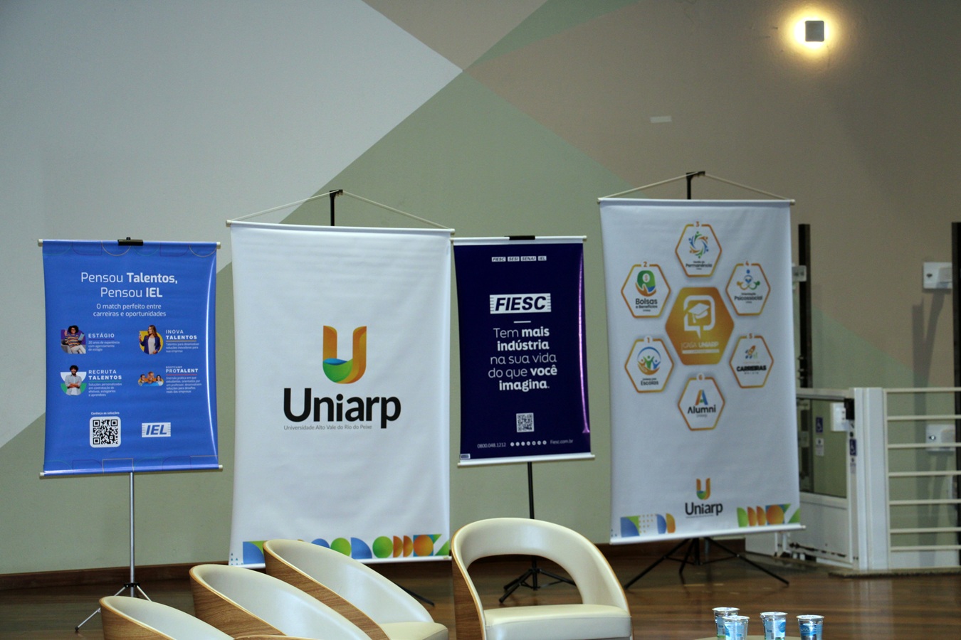 A mesa de autoridades foi composta pelo reitor da UNIARP, Dr. Neoberto Balestrin; pela gerente executiva do SESI, SENAI e IEL, Graziela Pereira da Silva; pela professora mestra Talize Foppa, coordenadora geral de Graduação; e pelo professor mestre Jorge Luiz Velasquez, coordenador de estágios. Ao final, brindes foram sorteados entre os acadêmicos participantes.