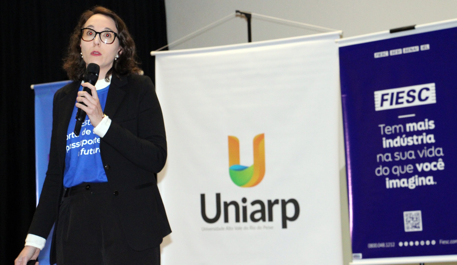 A programação incluiu a palestra “Do estágio ao sucesso: construindo o seu caminho profissional”, ministrada pela Dra. Eluize Vayne Maziero, especialista em inovação da FIESC e professora colaboradora do Programa de Mestrado e Doutorado da UNIARP. O acadêmico Gustavo Zir, do curso de Psicologia, também participou, compartilhando suas experiências como estagiário.