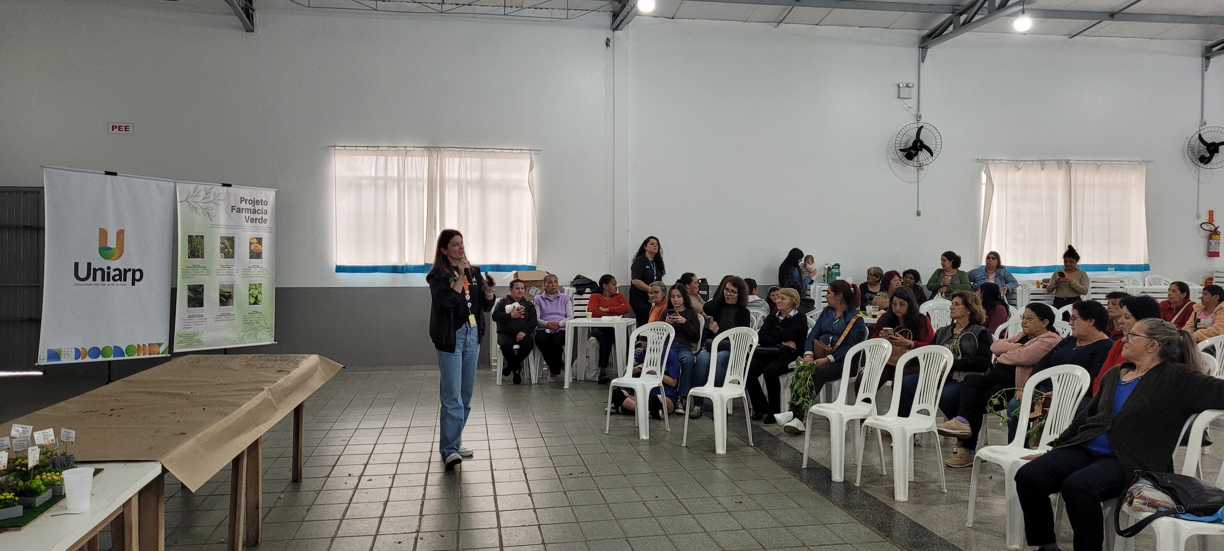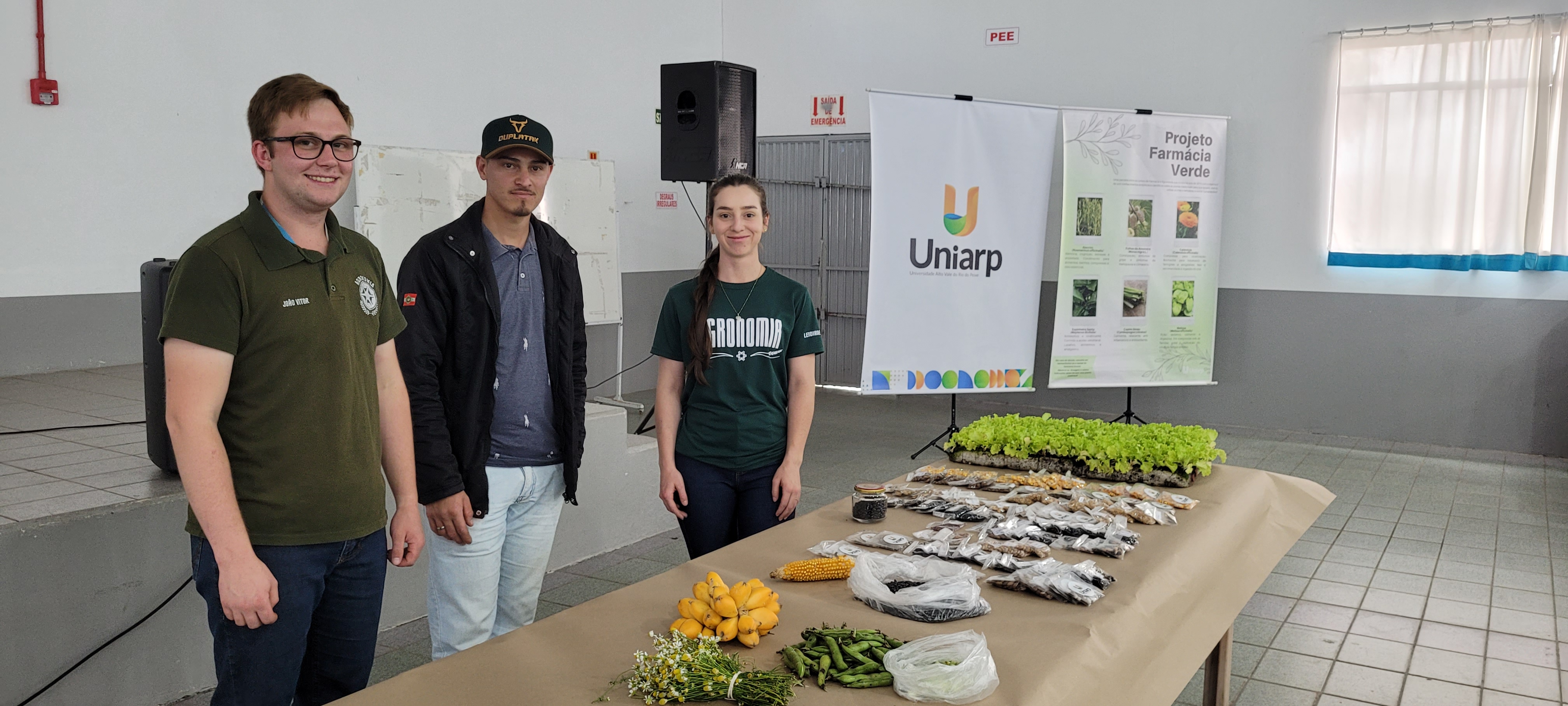 O curso de Farmácia participou com o projeto Farmácia Verde, que realizou a distribuição de chás medicinais produzidos na Universidade. A professora Juliângela Mariane Schroeder explicou ao público o funcionamento do projeto e abordou os benefícios terapêuticos das ervas medicinais, além de orientar sobre o uso consciente e adequado das plantas.