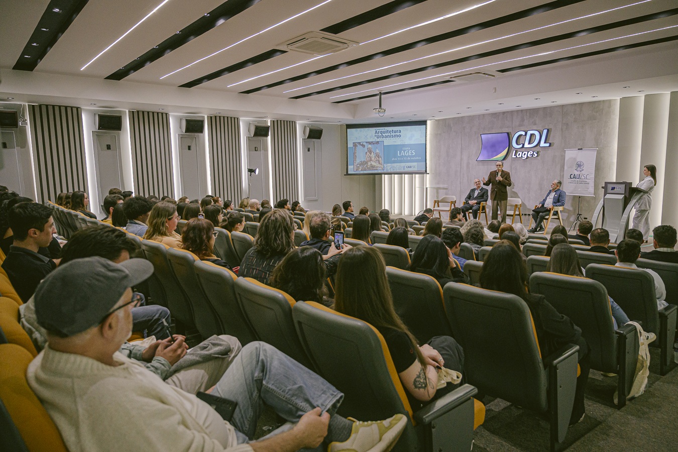 A etapa de Lages, integra uma série de eventos itinerantes que percorrem diferentes regiões do Estado com o objetivo de ampliar o diálogo sobre o papel da Arquitetura e do Urbanismo na construção de cidades mais justas, acessíveis e sustentáveis. A programação abordou temáticas como habitação de interesse social, mobilidade urbana, patrimônio cultural e ensino da Arquitetura e Urbanismo. Evento reuniu profissionais, docentes e estudantes.