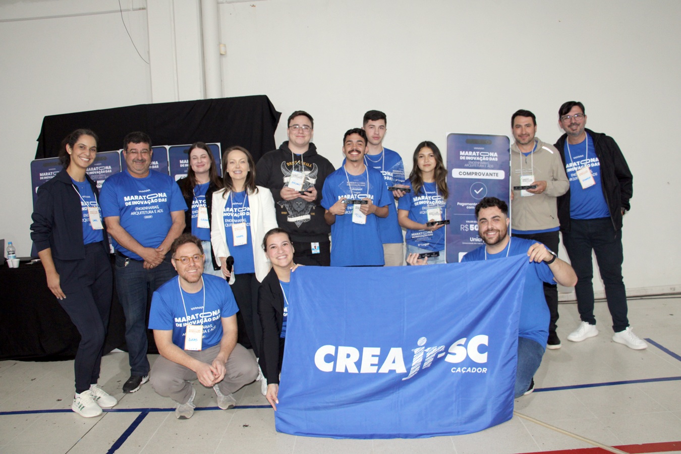 A maratona foi promovida pelo Núcleo de Inovação e Tecnologia (NIT) e pelo Programa de Pós-Graduação em Desenvolvimento e Sociedade (PPGDS), com apoio institucional do CREA-SC e do SEBRAE-SC.