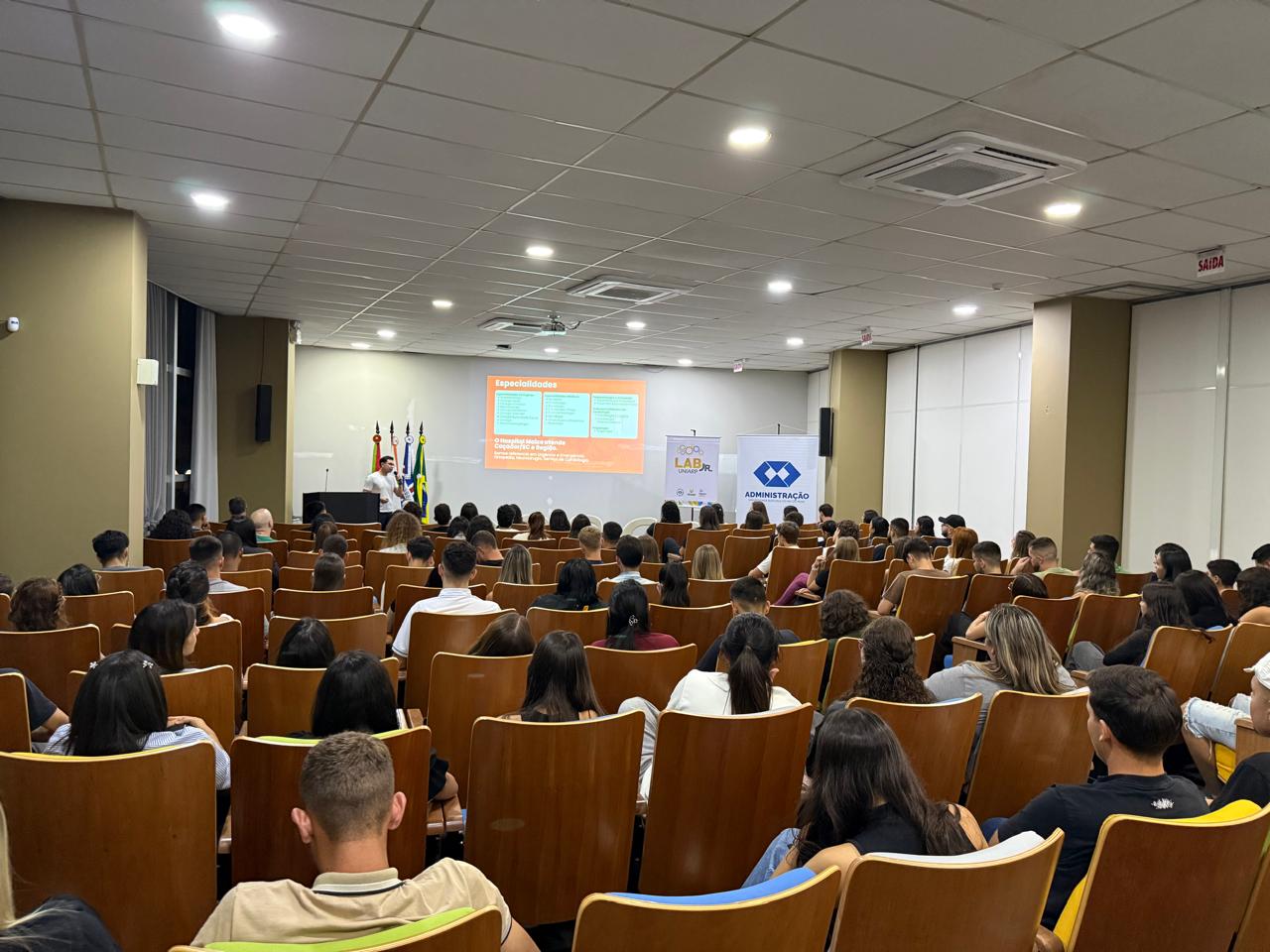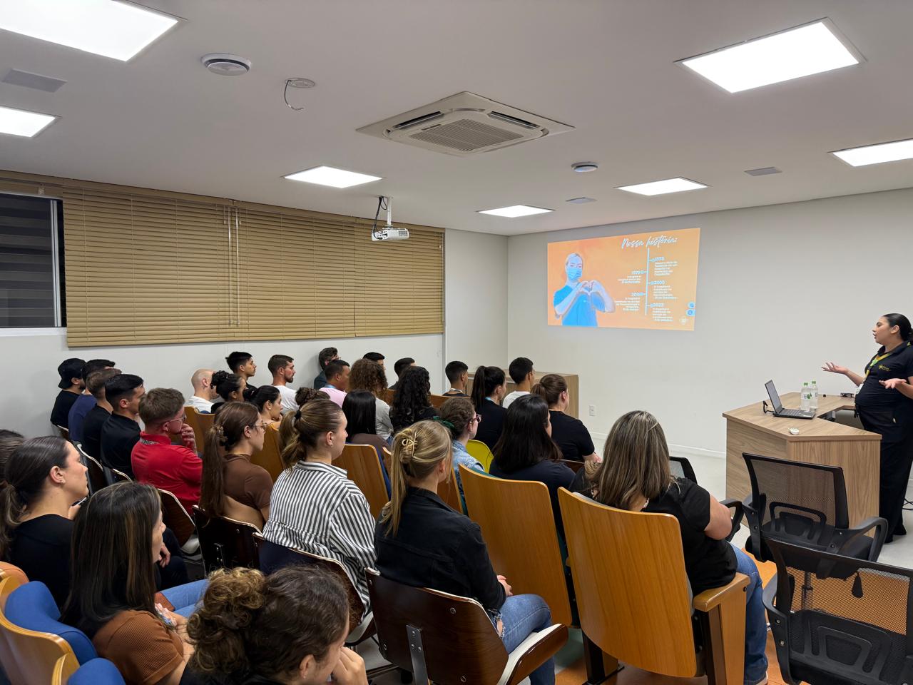 Na etapa seguinte, os estudantes participaram de uma apresentação institucional conduzida por representantes do hospital. Durante o encontro, foram expostos quatro desafios reais enfrentados pela organização — demandas que envolvem diferentes setores e têm como foco a melhoria no atendimento aos pacientes, o aprimoramento do fluxo de comunicação interna, a redução de desperdícios, entre outras questões estratégicas. As problemáticas foram distribuídas entre as turmas de acordo com o nível de formação e as competências já desenvolvidas pelos acadêmicos.