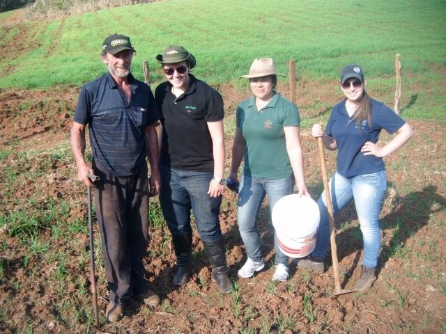 As propriedades de Benjamin Sabedot, Luís e Admilson Scapinelli, Narcísio Scapinelli, Felipe e Fortunato Bianchi, Geraldo Kutcher e Augusto Driessen receberam a visita dos acadêmicos que coletaram amostras de solo. Foram escolhidas áreas destinadas à produção de milho grãos, milho silagem, tomate e produção de forrageiras anuais de verão e inverno. A partir do laudo de análise de solo os acadêmicos irão elaborar um plano com recomendações de calcário, fertilizantes orgânicos e minerais e cultivos em rotação de cultura para melhoria das condições físicas, químicas e biológicas do solo. Os resultados desta interpretação e recomendação serão apresentados e discutidos posteriormente com os agricultores.