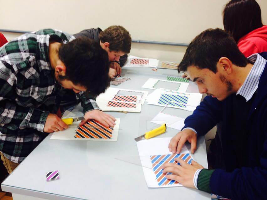O professor Alexandre Schermach explica que foram desenvolvidos trabalhos para encontrar formas, usando técnicas de repetição e rotação formando ladrilhos. “Este trabalho foi feito todo a mão e cada aluno desenvolveu 16 opções diferentes, resultando em painéis ilustrados e contribuindo como desafio e ampliação da visão formal do aluno, ou seja, ele percebe que de uma única forma podemos gerar várias outras”, explica. Segundo ele a exposição também reforçou o objetivo de valorizar o esforço e dedicação do aluno.