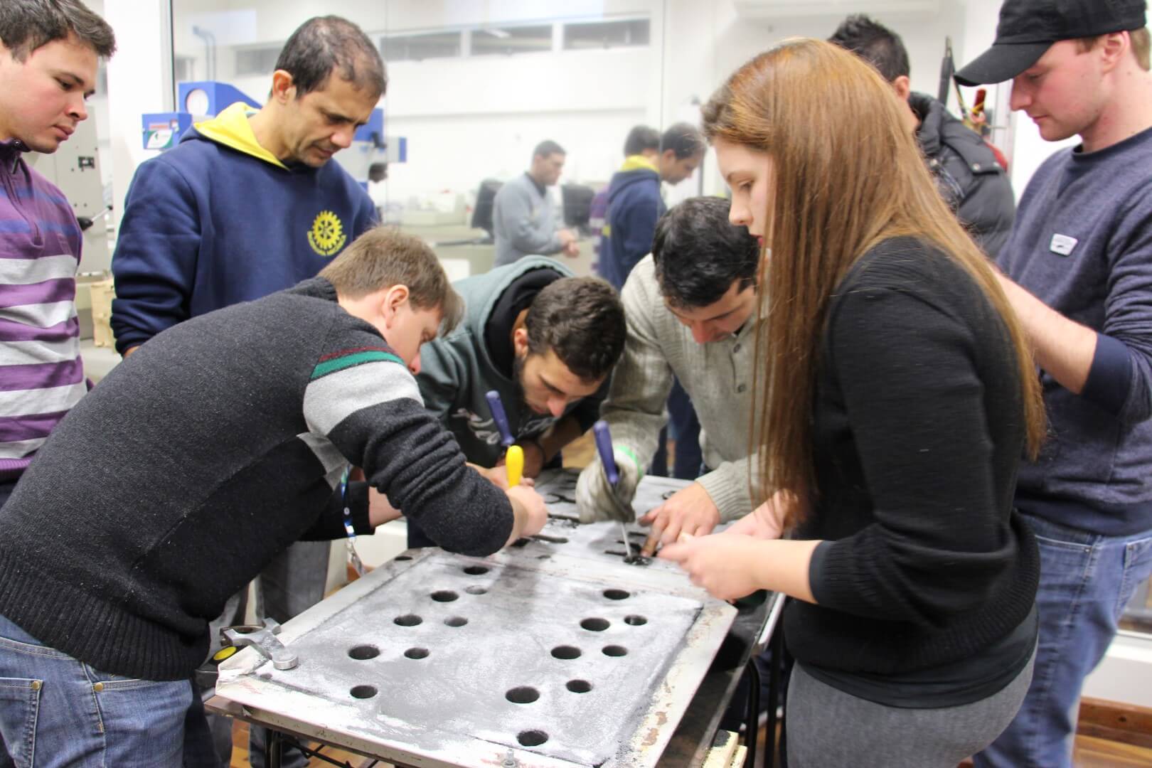 Acadêmicos participam de aula prática de fundição em molde de areia