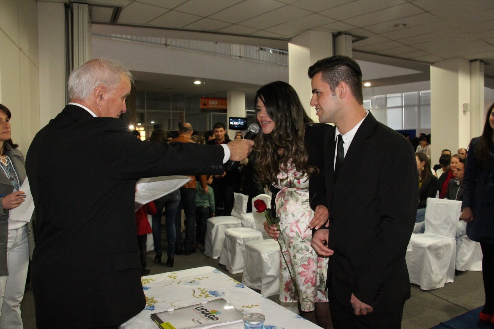 Quarenta e dois casais oficializaram sua união neste sábado (16) no Casamento Comunitário Civil, realizado pela UNIARP, através do Curso de Direito com apoio do Ofício de Registro Civil da Comarca de Caçador. O casamento foi realizado no Centro Administrativo e Reitoria, integrando a programação da primeira edição do Food Truck Festival e UNIARP de Portas Abertas.