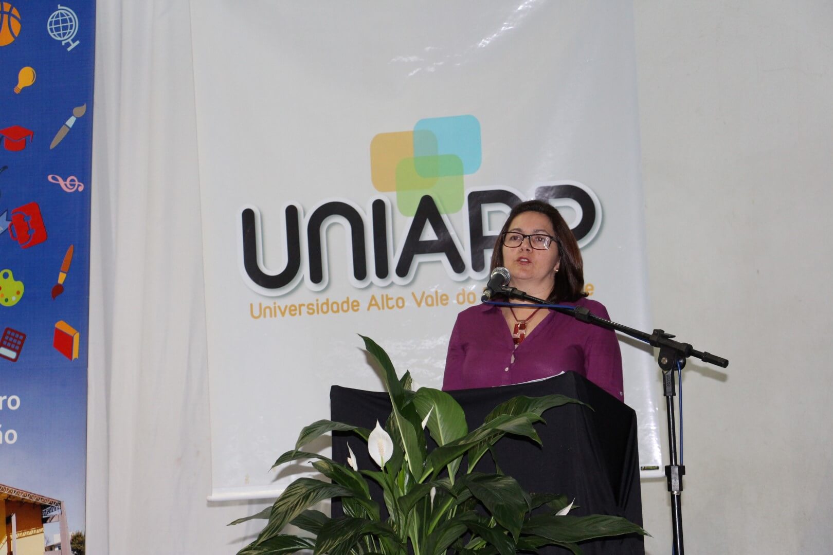 A abertura oficial do evento foi realizada no teatro da UNIARP e contou com a presença da professora Soeni de Barros Yamaguchi, pró-reitora do Campus de Fraiburgo, representando o vice-reitor Paulo Cezar de Campos, professor LP, coordenador do Curso de Mestrado Acadêmico Interdisciplinar em Desenvolvimento e Sociedade da UNIARP, Paulo Gonçalves, secretário municipal de Educação e Dirley Heller, gerente regional de Educação da ADR de Caçador. A palestra de abertura foi ministrada pela professora Ilma Passos Alencastro Veiga, Pós-Doutora em Educação pela Universidade Estadual de Campinas com o tema: “Repensando o papel do Projeto Político Pedagógico da Escola”. A moderadora foi a professora Aline Mateus mestranda do curso de Mestrado Acadêmico Interdisciplinar em Desenvolvimento e Sociedade da UNIARP e o relator foi o professor Ricelli Endrigo Ruppel da Rocha – Mestrado Acadêmico Interdisciplinar em Desenvolvimento e Sociedade da UNIARP.