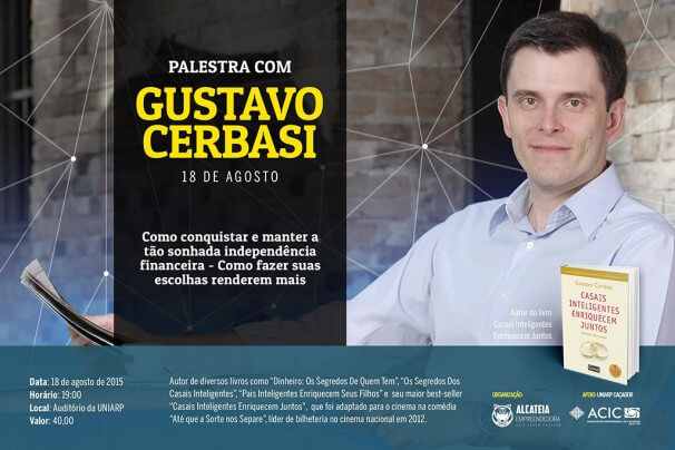 A Associação Empresarial de Caçador (ACIC), através do Núcleo Jovem- Alcatéia Empreendedora, com apoio da UNIARP realiza dia 18 de agosto palestra com o economista Gustavo Cerbasi. A palestra abordará o tema: “Como conquistar e manter a tão sonhada independência financeira- como fazer suas escolhas renderem mais”. O evento acontece no auditório da UNIARP, com início às 19 horas.