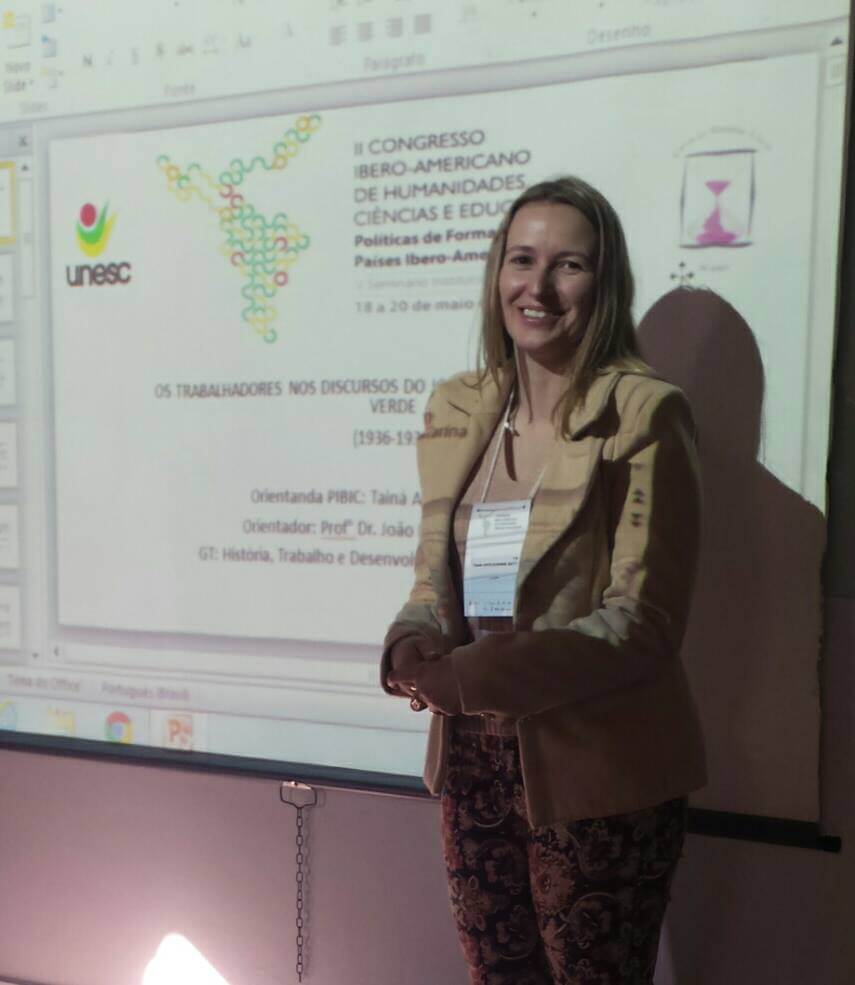 A mestranda Thaís Kusinski Gatti, do curso de Mestrado Desenvolvimento e Sociedade da UNIARP participou do Congresso Ibero-Americano de Humanidades, Ciências e Educação da UNESC realizado em Criciúma de 18 a 20 de maio. O evento teve como tema: “Políticas de Formação nos Países Ibero-Americanos”.