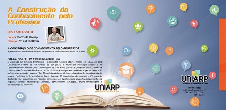 Na sexta-feira (18) o Seminário será aberto para gestores e professores das redes de ensino de Caçador e região. O evento acontecerá no Teatro da Uniarp com palestra do professor Fernando Becker.