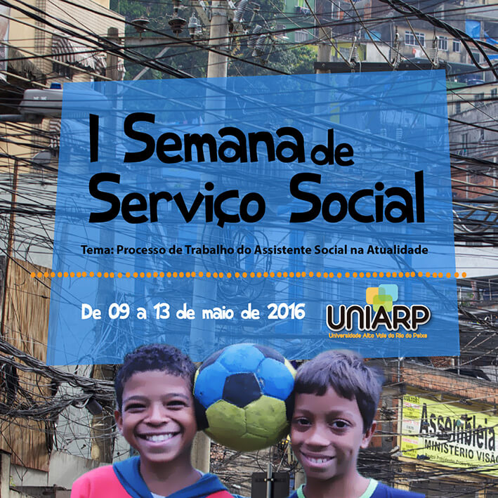 A UNIARP realiza de 09 a 13 de maio de 2016 a Semana Acadêmica de Serviço Social. O evento será realizado no Auditório do Centro Administrativo e Reitoria. O objetivo do evento é oportunizar o desenvolvimento, troca de conhecimentos e integração com profissionais renomados da área, tendo como foco principal acadêmicos do curso de Serviço Social, professores e profissionais de instituições educacionais e/ou assistenciais.