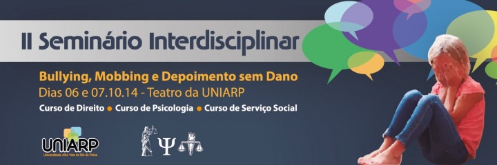 A UNIARP através dos cursos de Direito, Psicologia e Serviço Social realiza dias 06 e 07 de outubro no Teatro o II Seminário Interdisciplinar com discussões sobre bullying e depoimento sem dano. A primeira palestra abordará o tema: “Bullyng sob a ótica da responsabilidade civil indenizatória dos pais e das escolas”. O palestrante será Alexandre Saldanha Tobias Soares, advogado especialista em bullying e mobbing. Alexandre nasceu em 1984 e foi vítima de bullying por quase dez anos. Devido ao sofrimento vivenciado nas escolas decidiu dedicar sua vida acadêmica e profissional para combater este tipo de violência. A segunda palestra falará sobre o tema: “Depoimento sem dano” e será ministrada por Anna Carolina Franco Lamy, advogada, mestre em Direito, Estado e Sociedade.