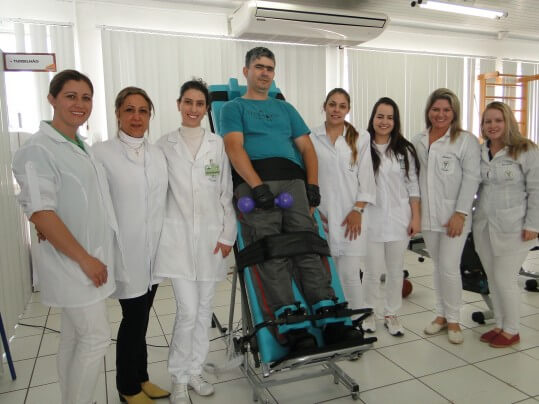 A Universidade Alto Vale do Rio do Peixe (UNIARP), através do curso de Fisioterapia adquiriu recentemente uma maca ortostática. O equipamento possui regulagem de altura e possibilita a colocação do paciente na posição em pé (posição ortostática ou angulação ortostática desejada para fins terapêuticos), sem que haja necessidade de nenhuma colaboração ativa do paciente seja ele tetraplégico ou paraplégico. A maca auxilia na manutenção ortostática, circulação, equilíbrio, segurança, entre outros vários benefícios aos pacientes portadores de lesões medulares. A professora Siham Abdel, do Estágio clínico comunitário (área de neurologia) do curso de Fisioterapia, explica que com mais este equipamento e com o atendimento realizado na Clínica Escola de Fisioterapia, os alunos têm a oportunidade de aplicar todas as técnicas teóricas e práticas na vivência clínica de cada área de seus estágios. “Agradecemos a UNIARP que prontamente adquire materiais para o andamento e aprendizado de seus estágios curriculares obrigatórios”, comenta a professora.