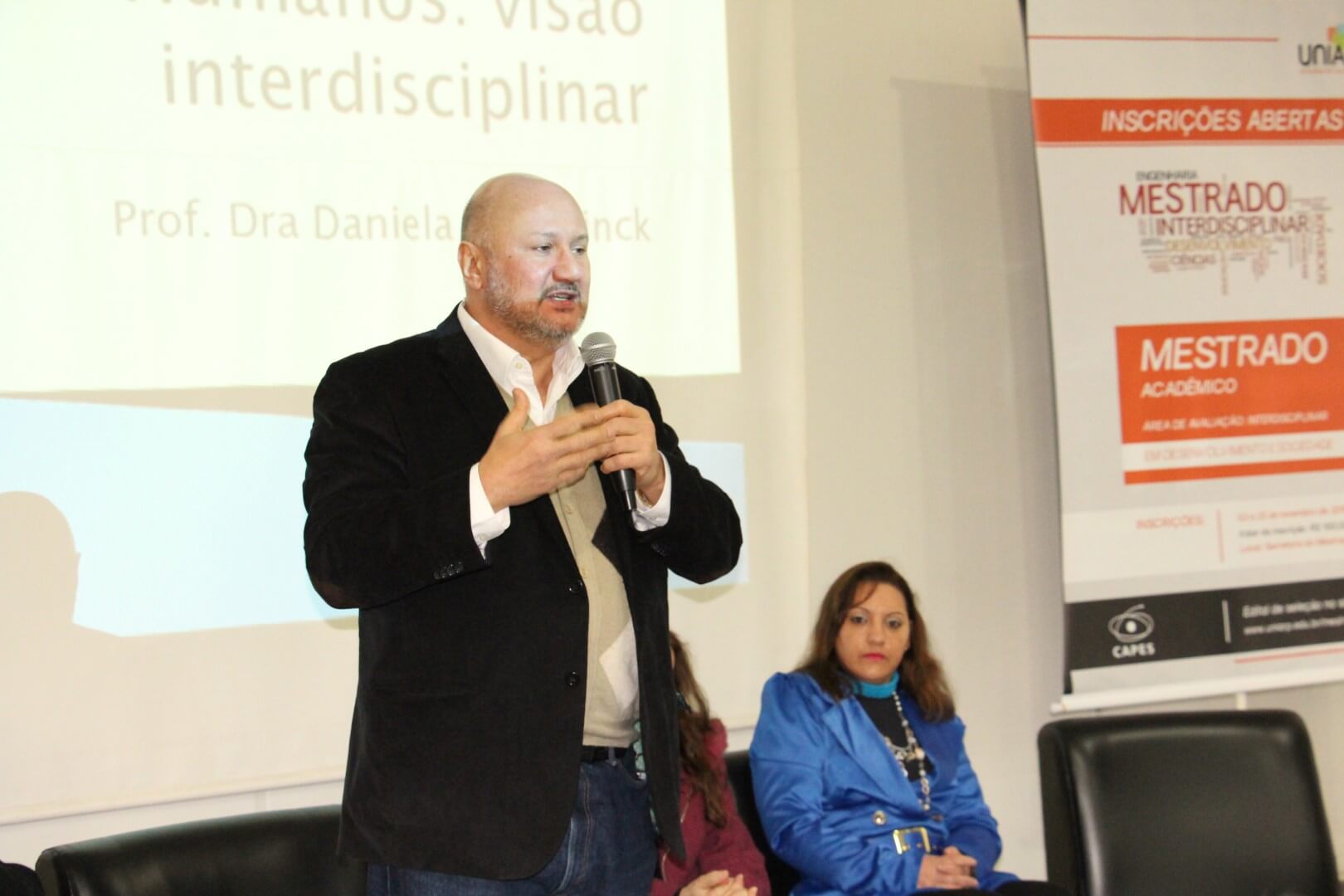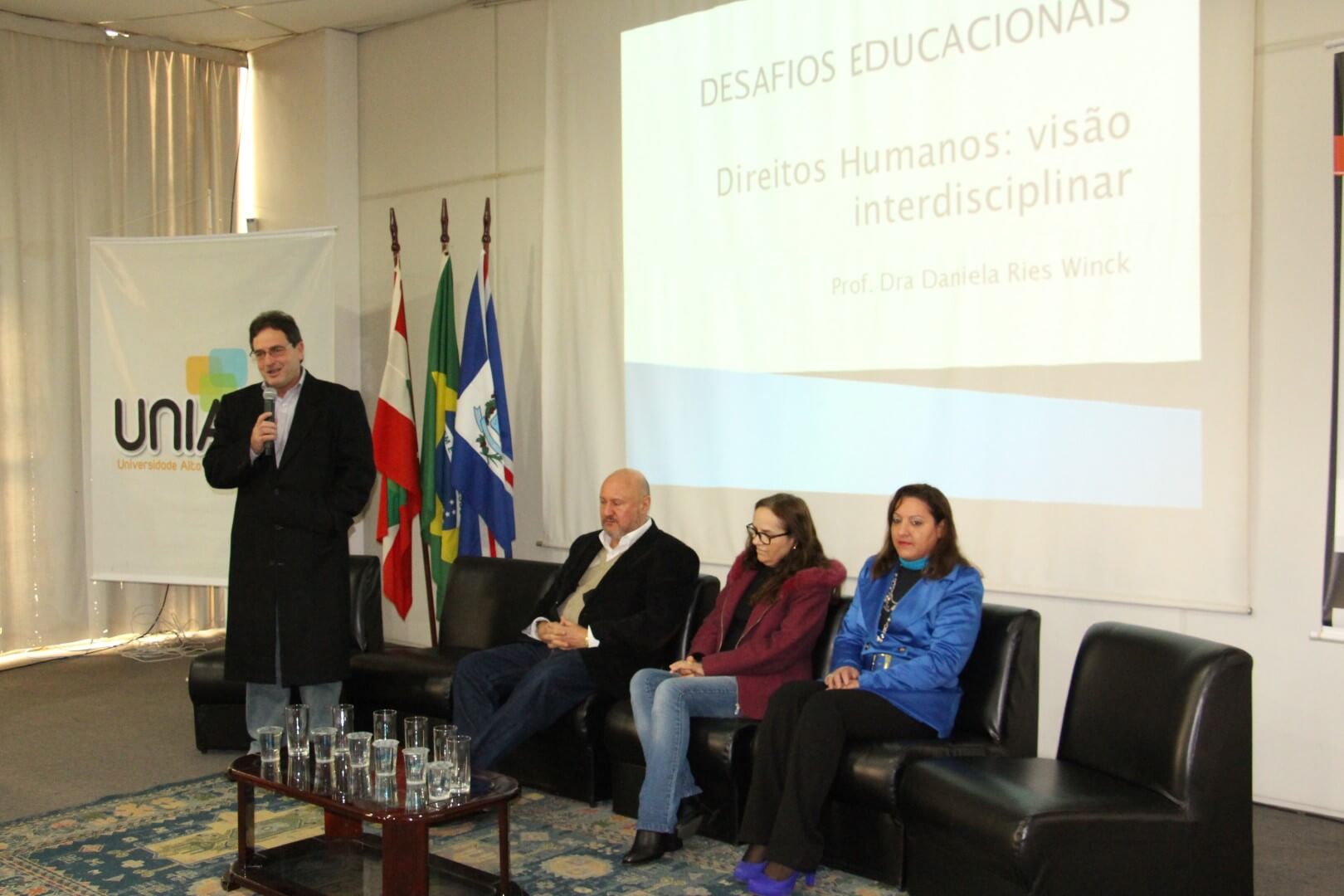 A primeira palestra: Direitos humanos numa visão interdisciplinar foi ministrada pela dra. Daniela Ries Winck da UNOESC. A segunda palestra com o tema: Ensino: o desafio da interdisciplinaridade foi ministrada por Sandro Luiz Bazzanella, professor da UnC.