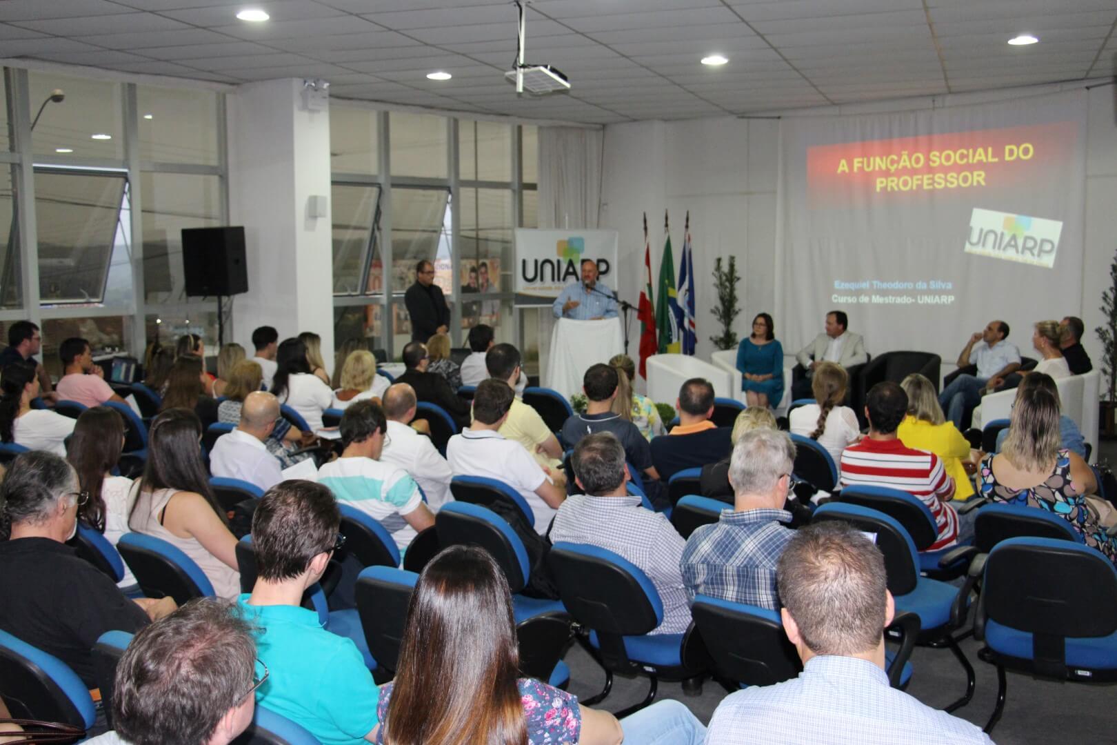 Diretoria e Reitoria da UNIARP deram as boas-vindas ao corpo docente, reforçando a temática da discussão sobre o papel do coordenador frente ao curso e a função social do professor. O evento contou ainda com palestra do professor Dr. Ezequiel Theodoro da Silva.