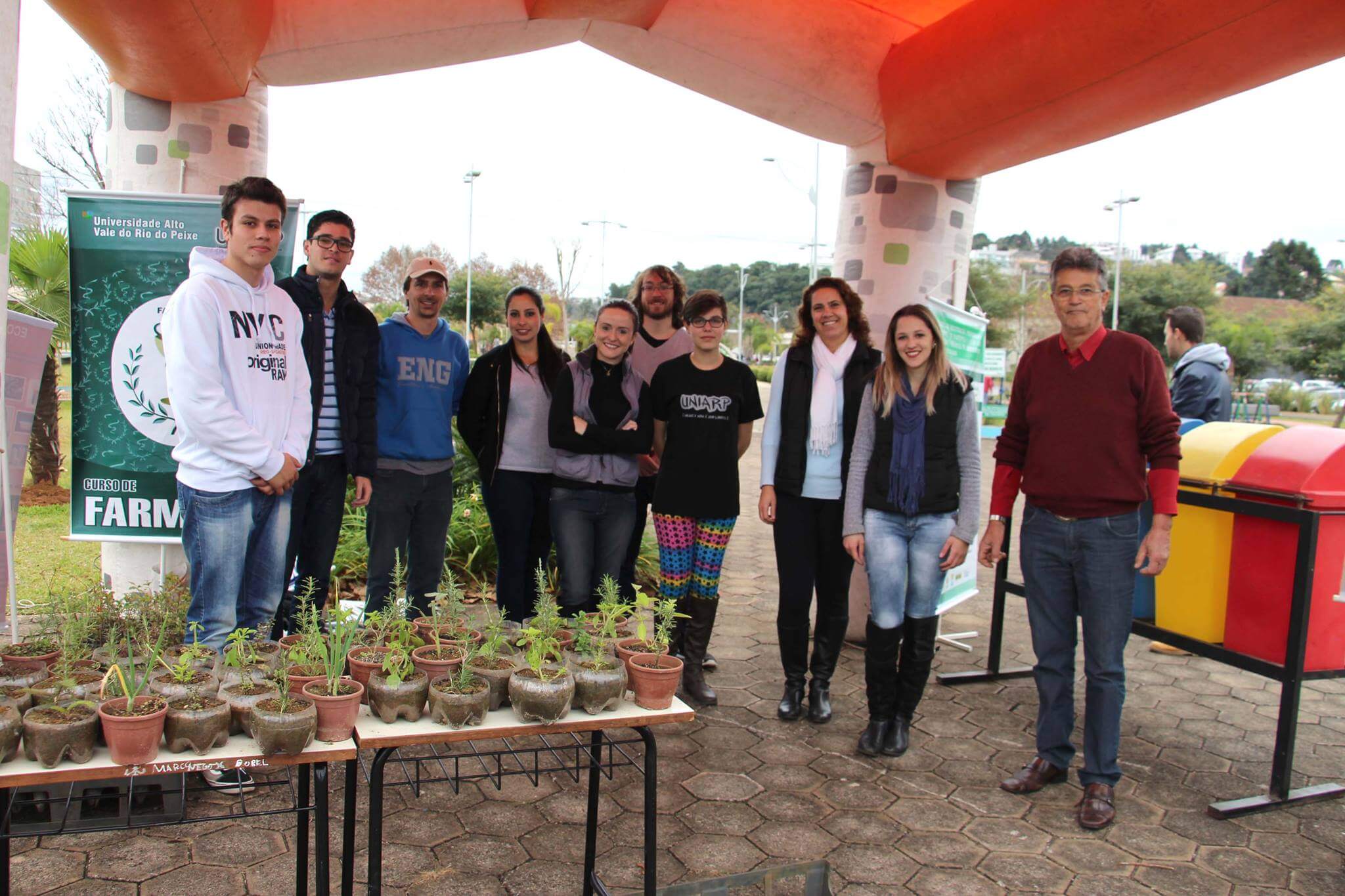 A Universidade Alto Vale do Rio do Peixe (UNIARP), através dos cursos de Ciências Biológicas, Farmácia e Engenharia Ambiental e Sanitária realizou uma ação de conscientização neste domingo (05) no Parque Central José Rossi Adami para marcar o Dia Mundial do Meio Ambiente. Acadêmicos e professores estiveram interagindo com a comunidade, realizando orientações sobre preservação, conservação ambiental, gerenciamento de resíduos e com a distribuição das mudas de plantas medicinais e árvores frutíferas em parceria com o Horto Municipal. Nos meses de abril e maio, também foi realizada a campanha: “Pense, Plante, Salve”. Alunos, professores e colaboradores da UNIARP, além de toda a comunidade caçadorense foram convidados a doar garrafas PET de um ou dois litros. Mais de 500 garrafas foram arrecadadas e foram transformadas em vasos de plantas.