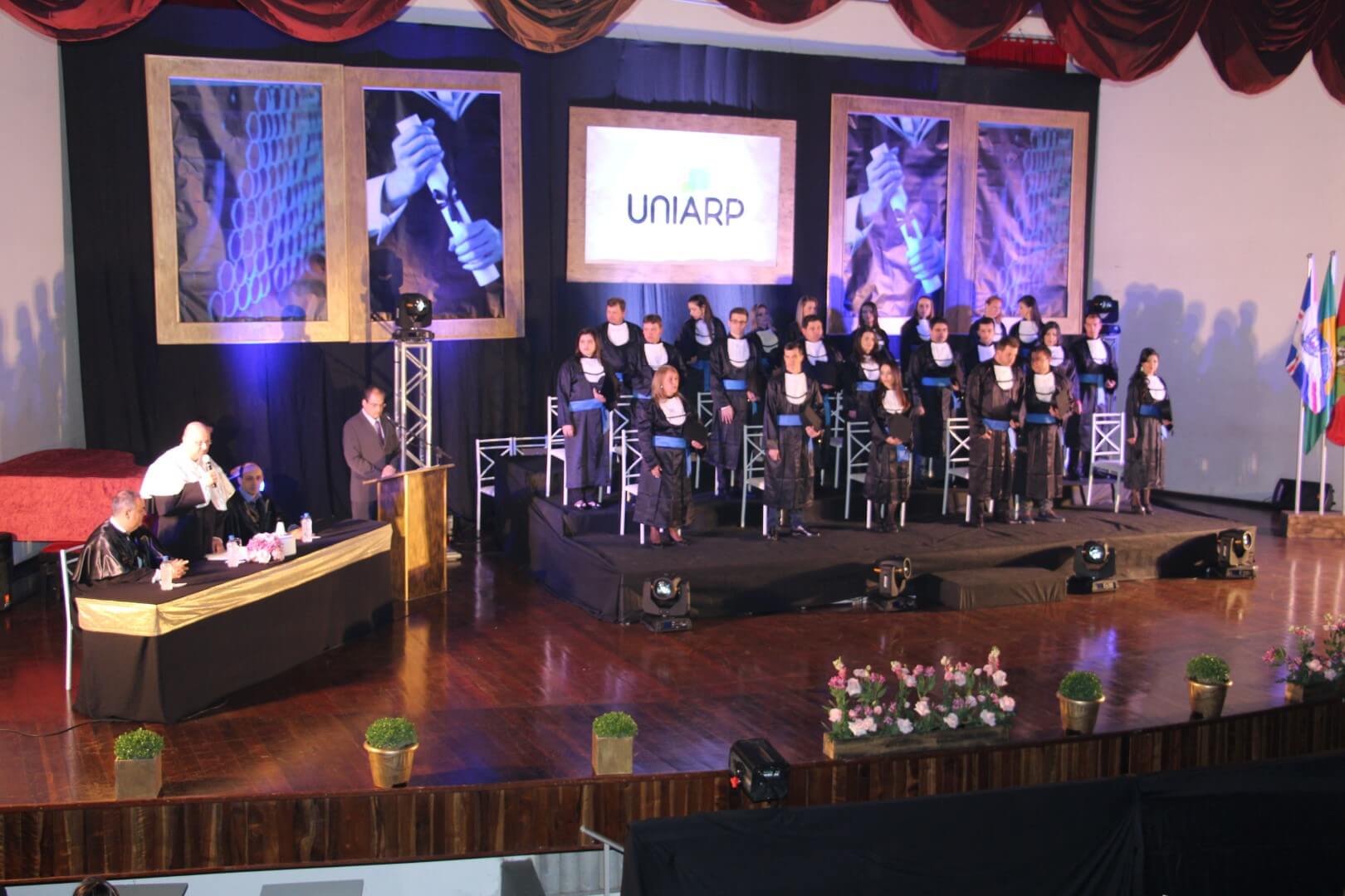 A UNIARP realiza dia 05 de agosto mais uma formatura institucional. O evento será realizado no Teatro da UNIARP. A cerimônia de colação de grau será completa e sem nenhum custo ao aluno formando, com exceção da cobertura fotográfica, feito por empresa especializada e se for de interesse do aluno.