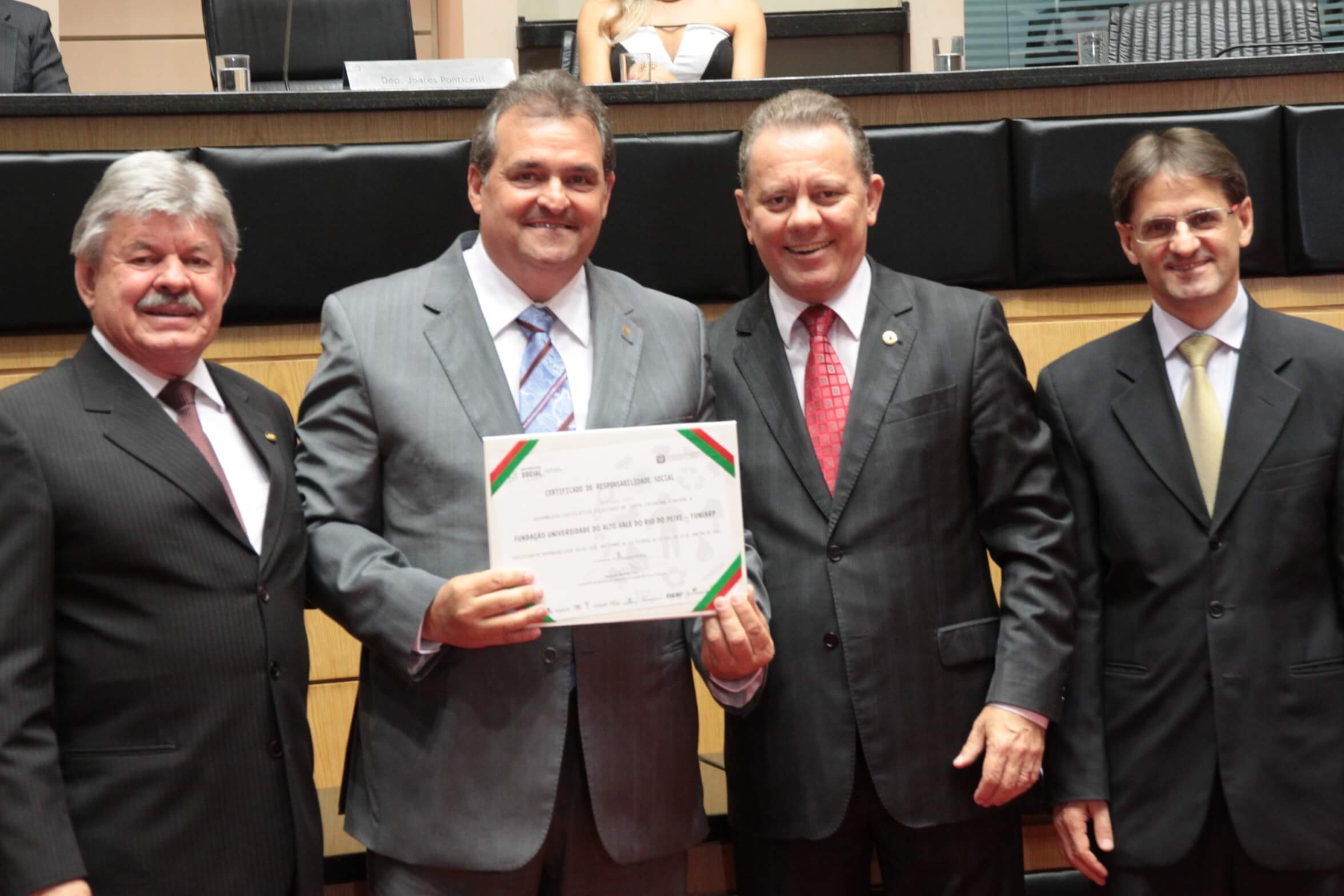 A Fundação Universidade Alto Vale do Rio do Peixe recebeu nesta terça-feira (09) em Florianópolis o Certificado de Responsabilidade Social de Santa Catarina, 2014, da Assembleia Legislativa de Santa Catarina (ALESC).