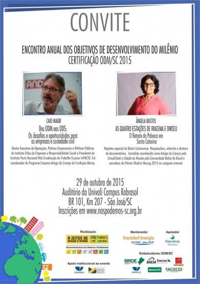 A Fundação Universidade Alto Vale do Rio do Peixe receberá dia 29 de outubro em Florianópolis o Certificado do Movimento Os Objetivos do Milênio. A UNIARP foi aprovada de acordo com os critérios do edital de Certificação ODM/SC 2015 e selecionada para receber o Certificado Anual. A honraria atesta que a UNIARP está comprometida com a melhoria da qualidade de vida dos cidadãos catarinenses. A premiação será realizada durante o Encontro Anual do Objetivos do Milênio, no auditório da Univali, Campus Kobrasol.