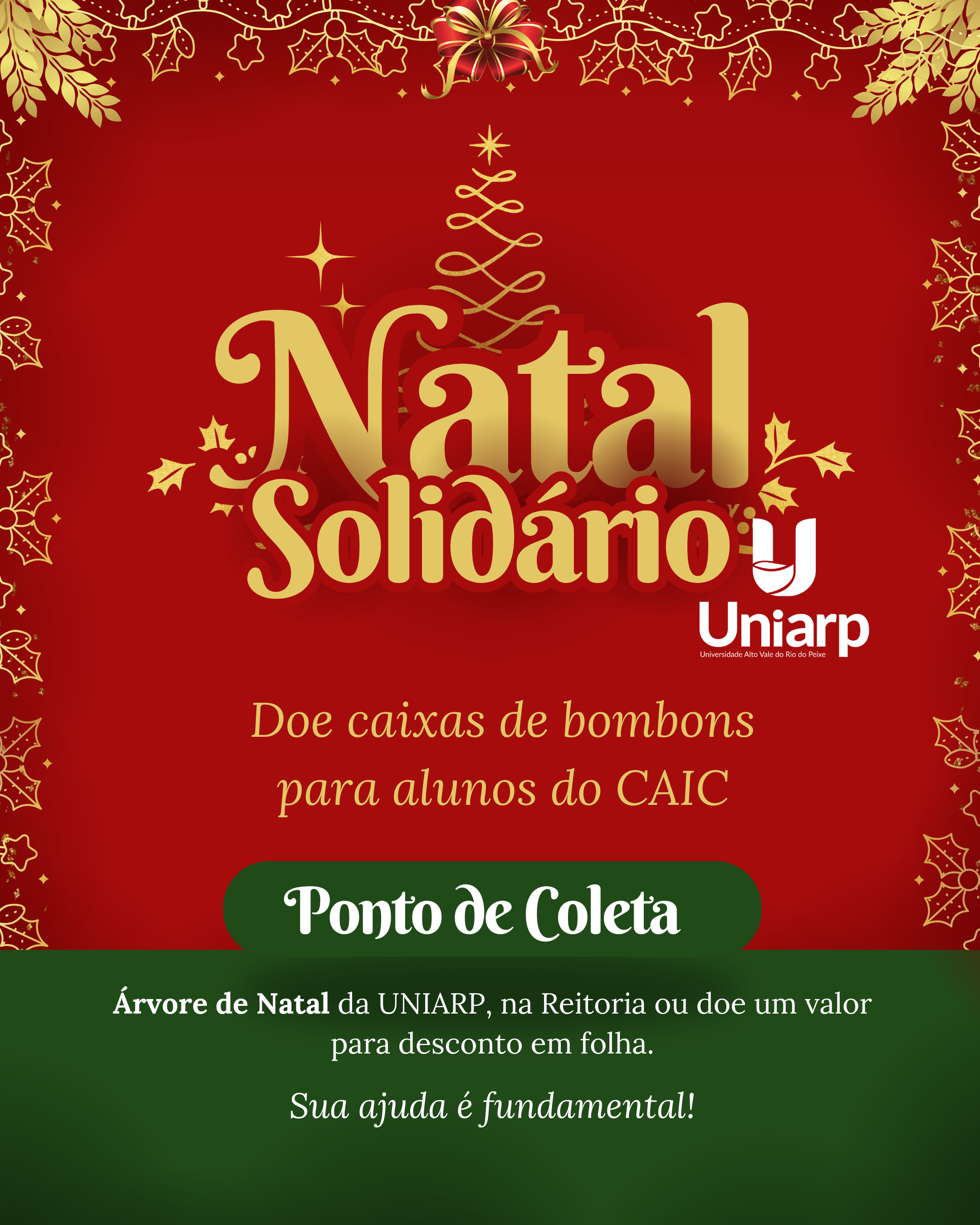 Vamos juntos adoçar o Natal e encher corações de felicidade Neste Natal, a UNIARP realizará uma ação