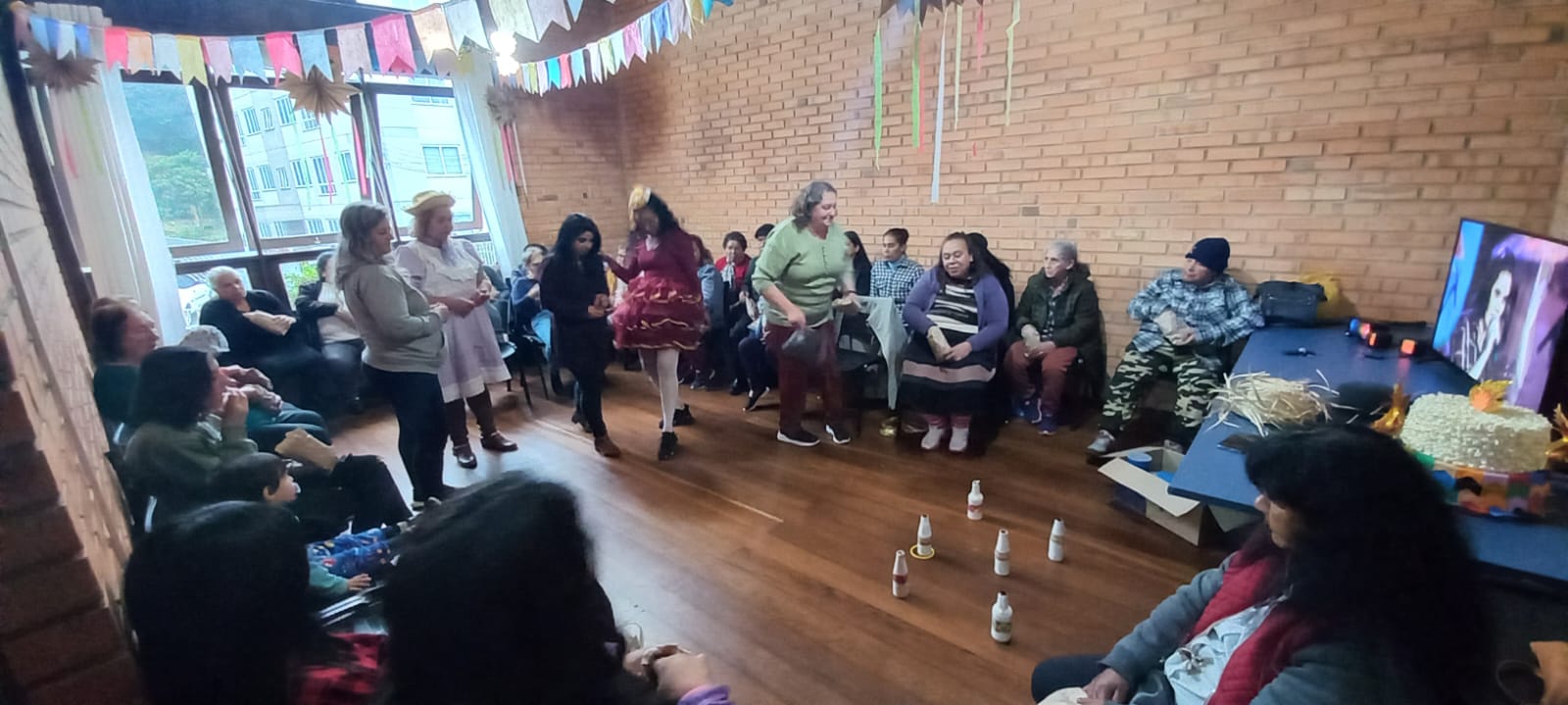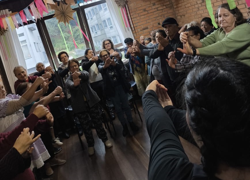 Acadêmicos do curso de Educação Física híbrido da UNIARP desenvolveram uma atividade no CRAS central de Caçador, dia 24 de junho. Foi uma tarde repleta de atividades focadas no sistema motor, aproveitando o tema festivo de São João para envolver o grupo de idosos presente. Participaram da ação: A equipe do GECOM e os acadêmicos bolsistas do PAEC e do FAP: Guilherme Bellaver, Nayara Miyuki Endo, Gislaine Costa Moreira e Camile Rowoldt. São acadêmicos do curso de Educação Física Híbrido da UNIARP monitorados pelo professor Lindomar Mineiro.